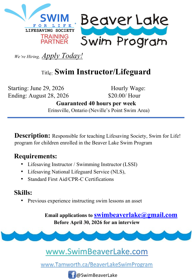 More info: www.SwimBeaverLake.com and www.tamworth.ca/BeaverLakeSwimProgram